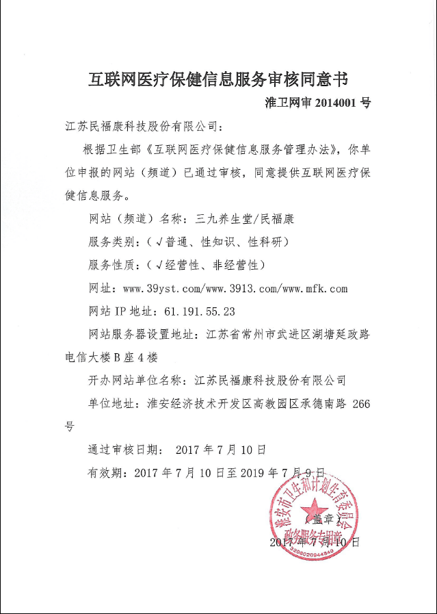 淮衛(wèi)網(wǎng)審(2014)001號(hào)